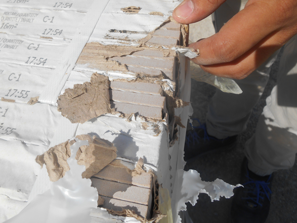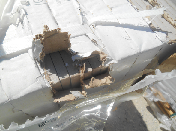 Le 1er juillet 2025, une expertise a été réalisée concernant un conteneur de 40’HC transportant 21 palettes de dalles en céramique de 60x120 cm. Le conteneur était en excellent état général à l’arrivée.